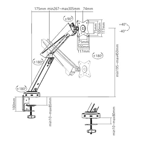 مواصفات Twisted Minds Single Monitor Mechanical Spring Monitor Arm (Fit Screen Size 17" - 32"):