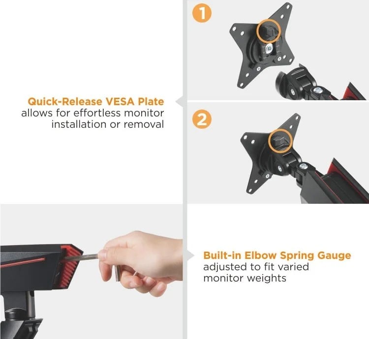 مميزات Twisted Minds Single Monitor Mechanical Spring Monitor Arm (Fit Screen Size 17" - 32") :