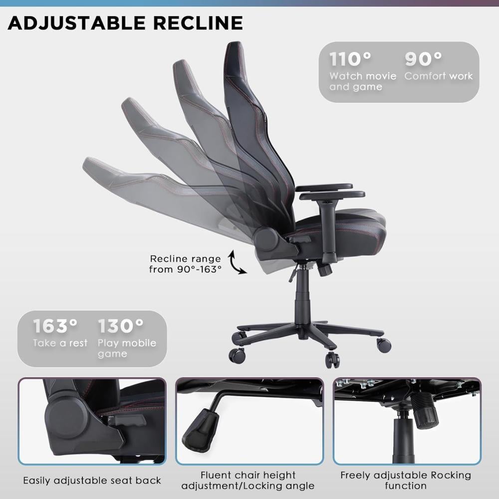 - 【كراسي ألعاب كبيرة وطويلة للبالغين】حجم الوسادة: 21.6 بوصة × 19.6 بوصة، حجم الظهر: 33 بوصة × 21.6 بوصة، أكبر بنسبة 20% من غيرها، مثالية للبالغين الثقيلين والأشخاص من 5'6" إلى 6'4". الوزن الموصى به 300 رطل.