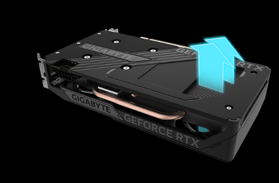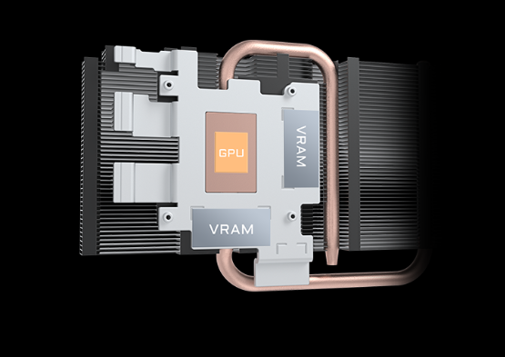 تتصل اللوحة النحاسية مباشرة بوحدة معالجة الرسومات، مقترنة بأنابيب الحرارة النحاسية المركبة، والتي تنقل بسرعة حرارة وحدة معالجة الرسومات وذاكرة الفيديو العشوائية إلى المشتت الحراري.