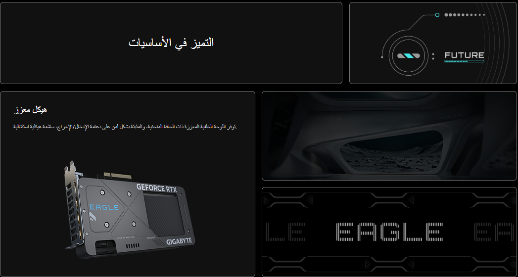 يدمج التصميم الأمامي بجرأة عناصر من عالم الطيران والخيال العلمي، مُبرزًا بوضوح أسلوب EAGLE المميز، مع الحفاظ على تناغمه الجمالي مع خط إنتاج اللوحات الأم. يضمن هذا لغة تصميم موحدة ويعزز هوية عائلة المنتجات.