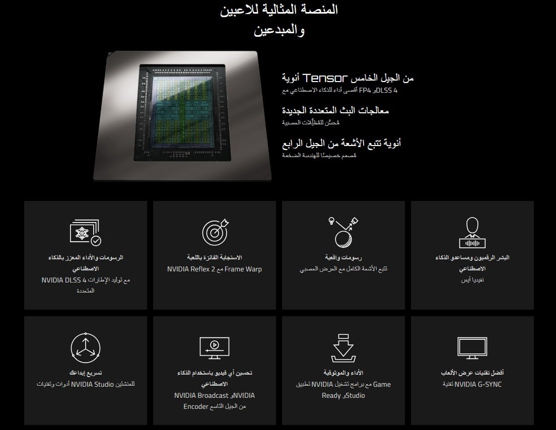 - مدعوم بهندسة NVIDIA Blackwell وDLSS 4